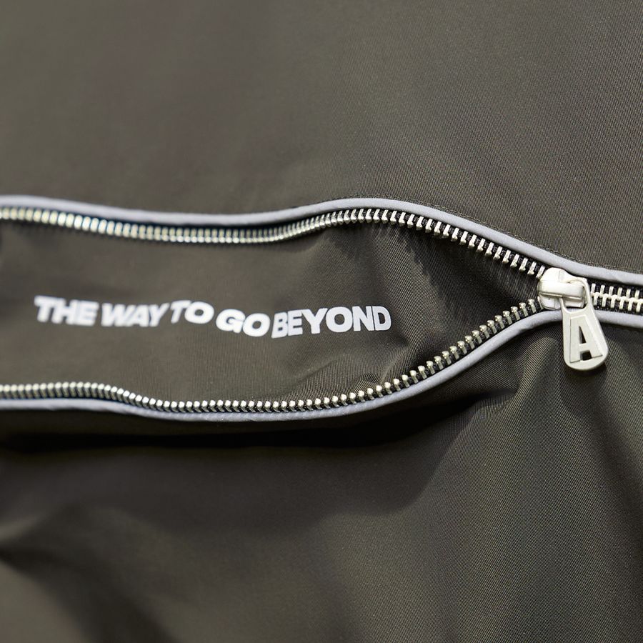 Молния с брендированным пуллером по всей спине и на рукавах